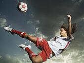 adolescente, adulto joven, aire libre, altísimo, atleta, brazos extendidos, capacidad, caucásico, chicas sólo adolescentes, cielo, cielo azul, color, concentración, concentrar, condición física, cuerpo lleno, deporte, deportes, desafiante, desafío, determinación, día, ejercicio, ejercitar, energía, entretenimiento, esfuerzo, estirar, europeo, extensión, exterior, fotografía, futbol, gente, habilidad, hembra, horizontal, imagen del color, joven, juego, juventud, logro, longitud completa, mirar hacia arriba, movimiento, mujer, niña, niño, notable, nube, occidental, opinión de ángulo baja, patada, patear, pelota, pelota del fútbol, perfil, persona, potencia, recreación, resolución, ropa, saltar, salto, salud, serio, solamente mujeres, solemne, una persona, uniforme, uno, veinte, vista lateral, vuelo, ángulo bajo, Stocks de imágenes, fotos libres de derechos, stock de fotogáfico, stock de fotógrafos, fotografías, ratratos, gráfico, murales gráficos, u15739754